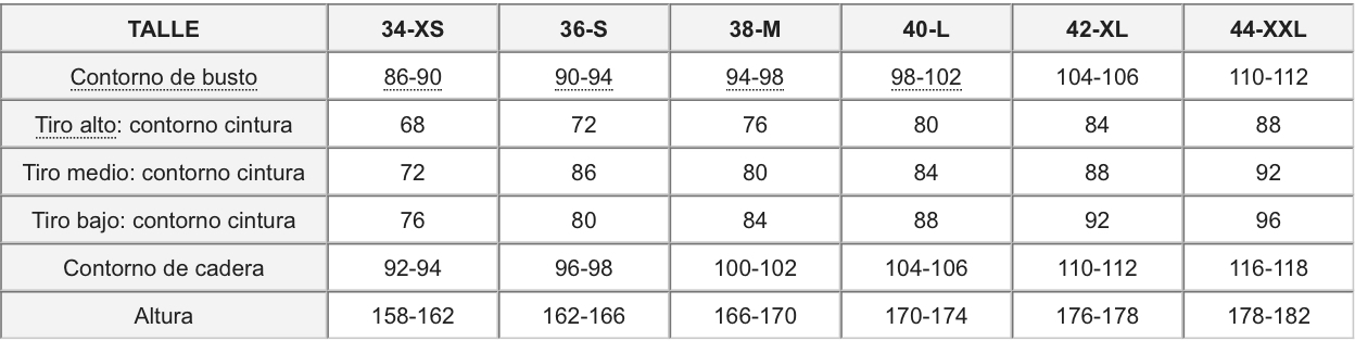 Te recomendamos llevar un talle mas del que usas